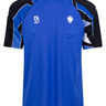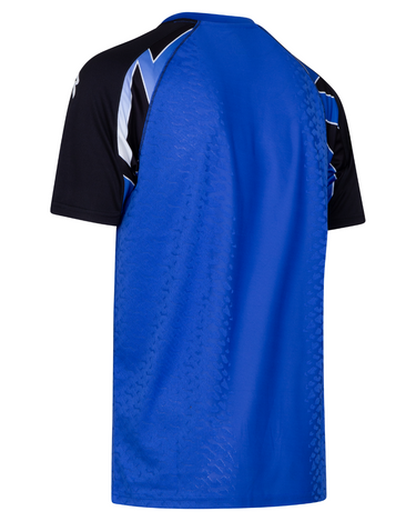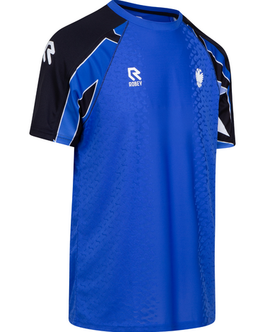 - Royal blue trainingsshirt, inclusief witte en zwarte details;