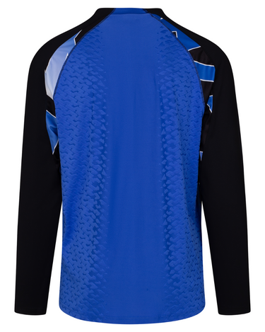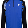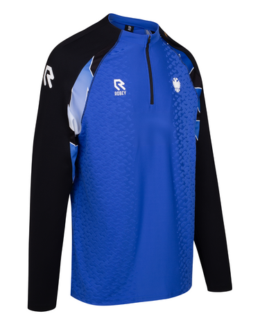 - Royal blue trainingsshirt, inclusief witte en zwarte details;