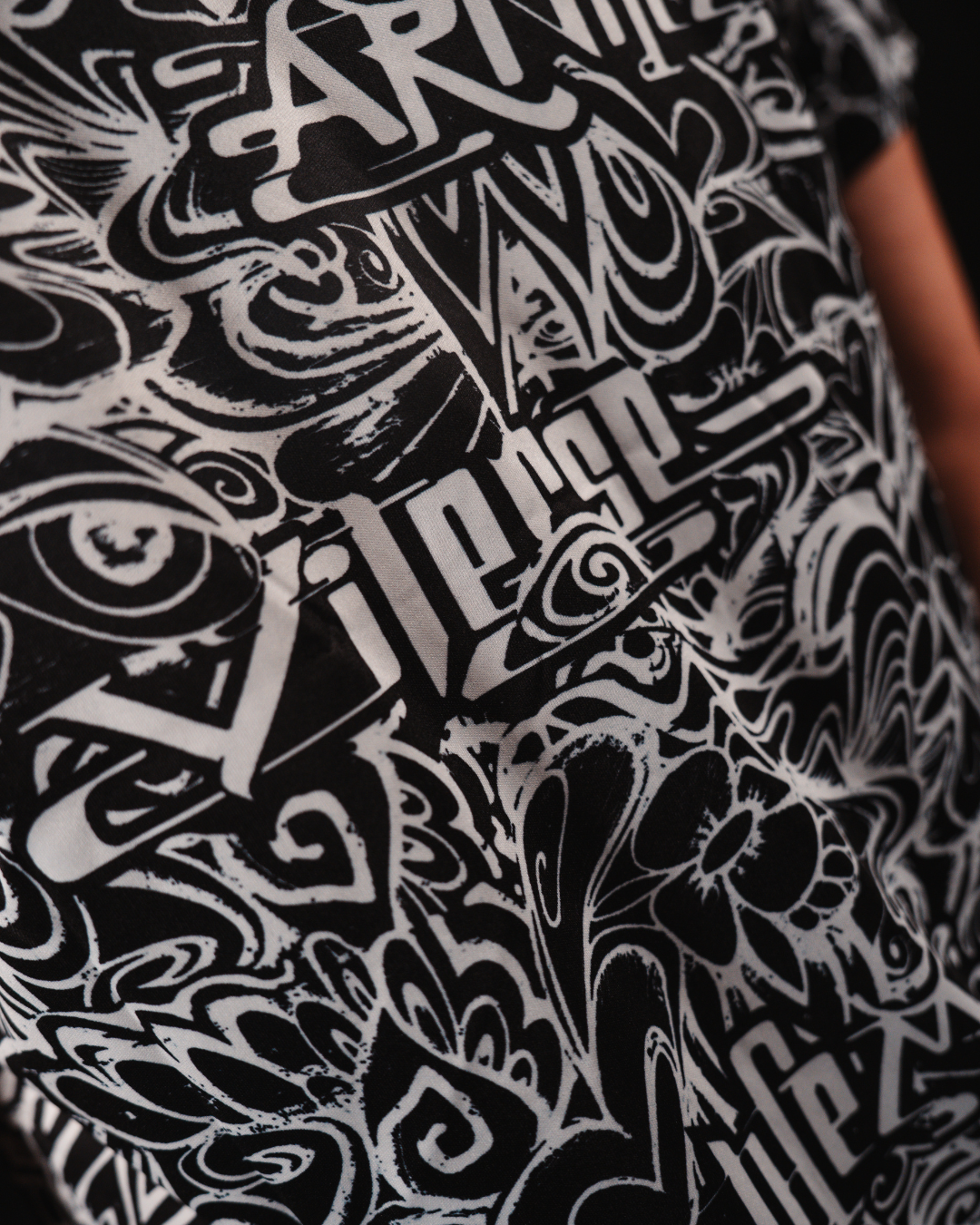 - Uniek patroon, verwijzend naar de graffiti onder het tunneltje bij Gelredome;